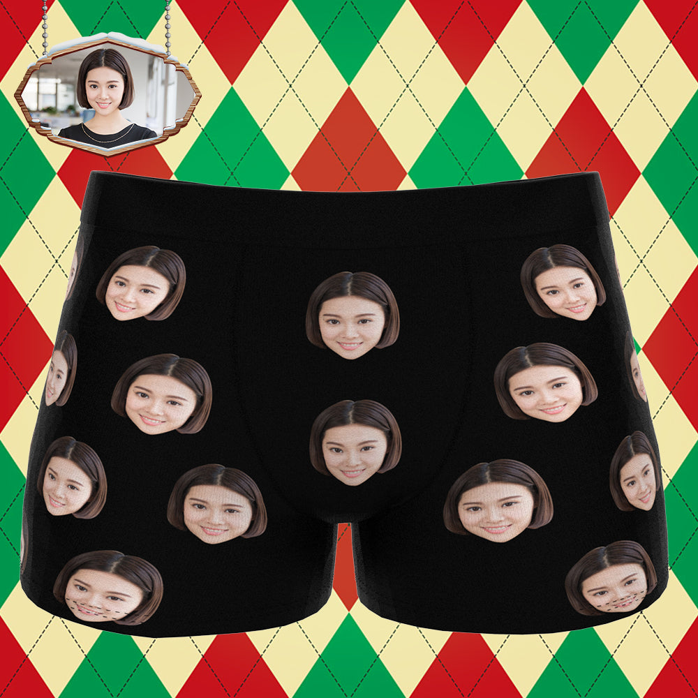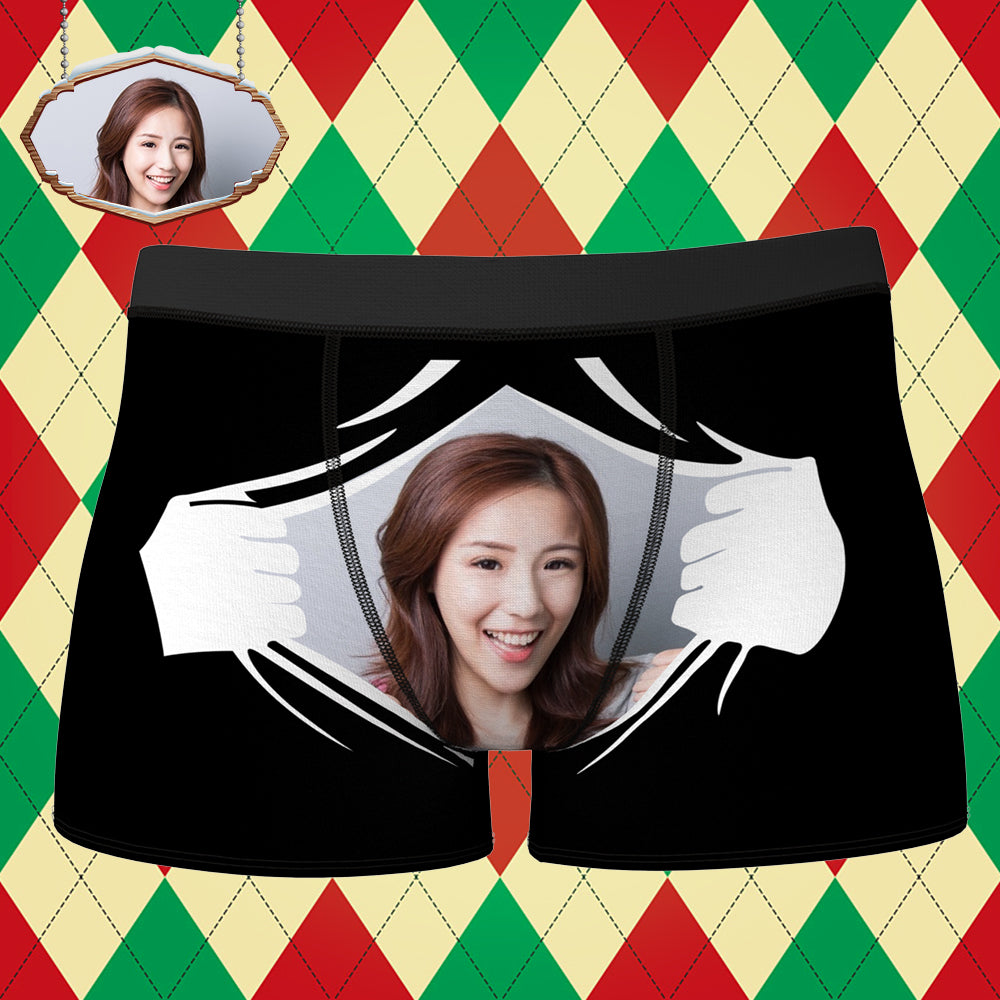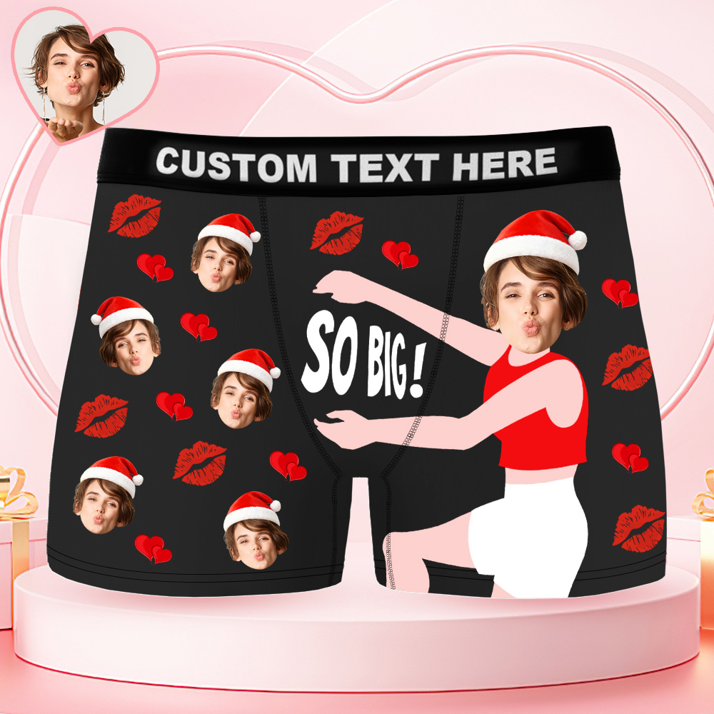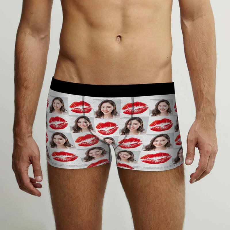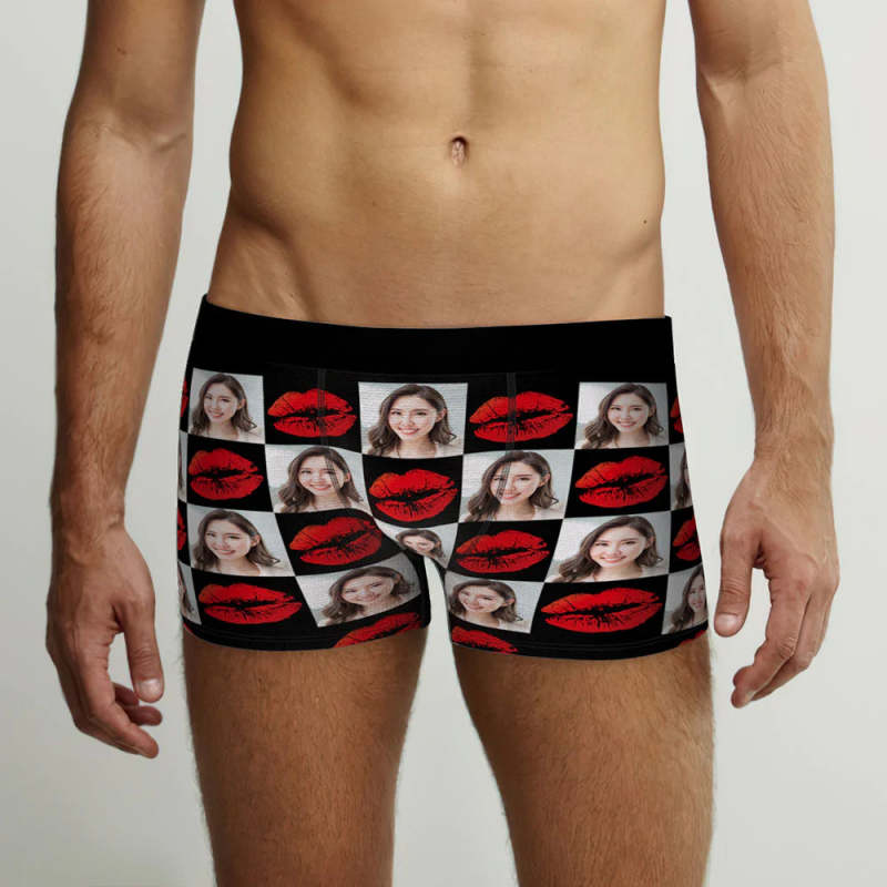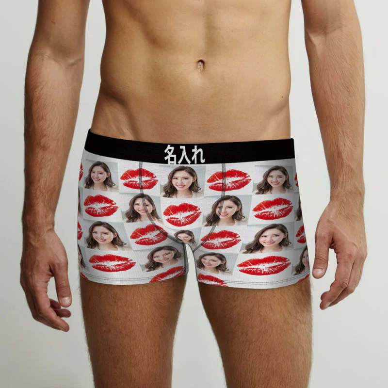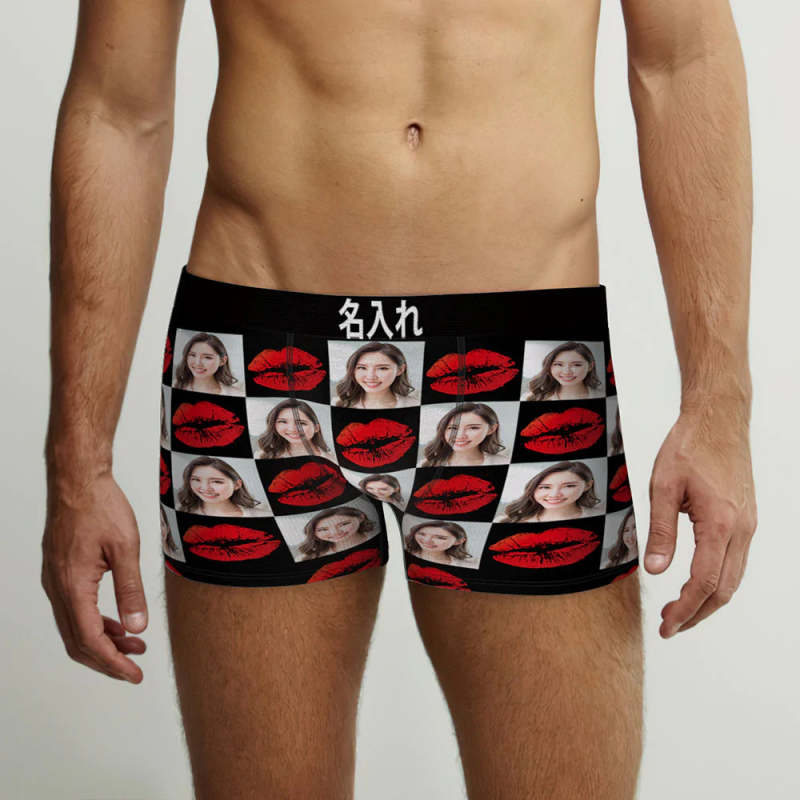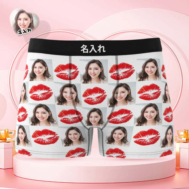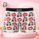 カスタムフォトボクサーパンツ-写真入れ可能なオリジナルバレンタイン顔下着ショーツギフト-赤い唇柄