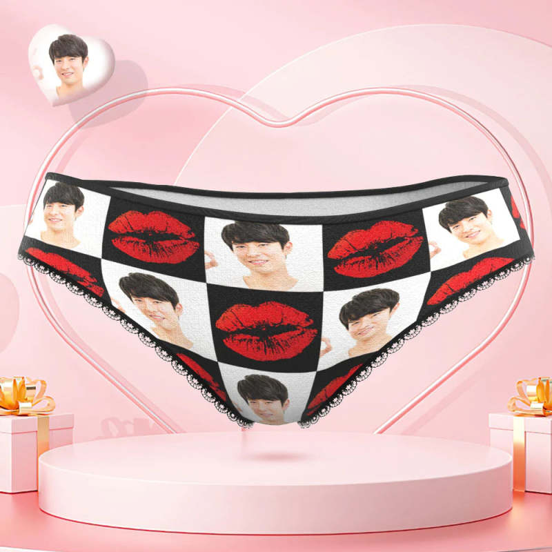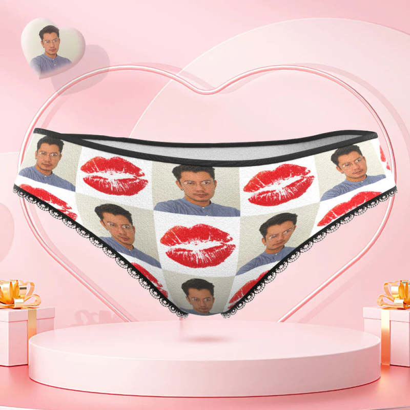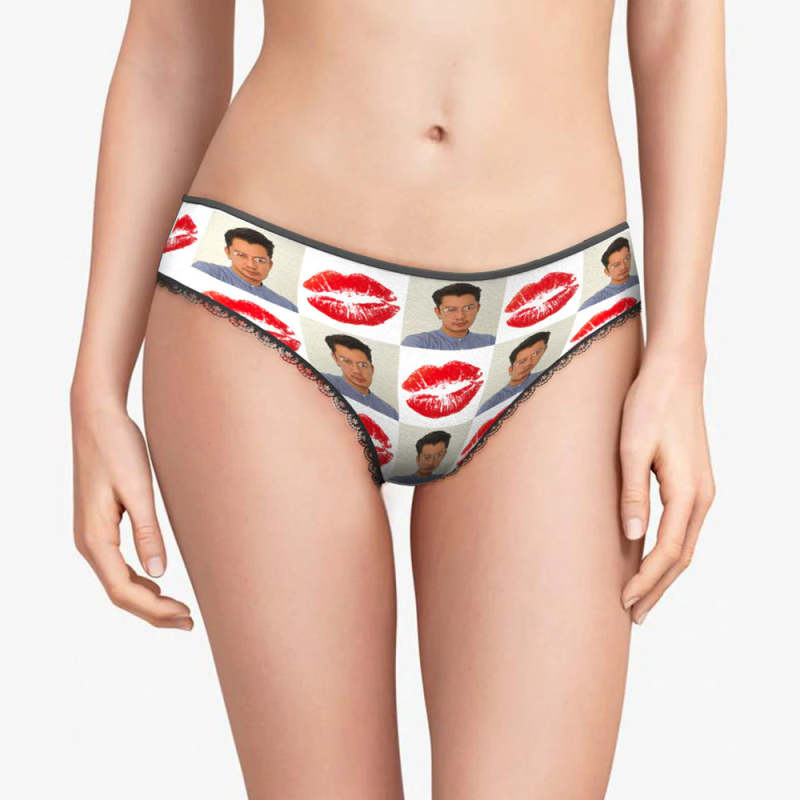 カスタムフォトパンティー-写真入れ可能なオリジナルバレンタインプレゼント女性用下着-赤い唇柄