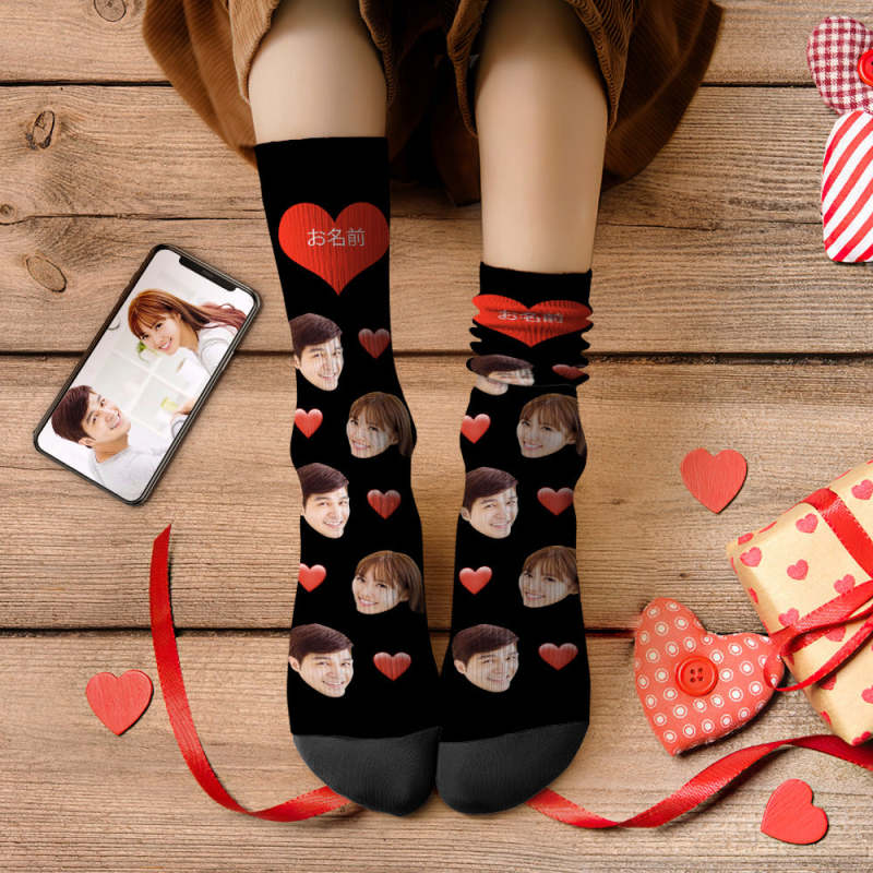 カスタムフェイスソックス-写真やテキスト入れ可能な3Dプレビューハート柄の靴下ギフトバレンタインギフト