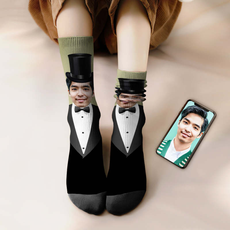 カスタムフェイスソックス-写真入れ名入れ可能な紳士柄のオリジナル靴下プレゼント
