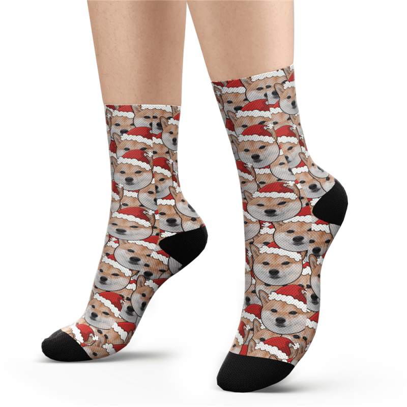 カスタムフェイスマッシュ靴下 犬 サンタの帽子