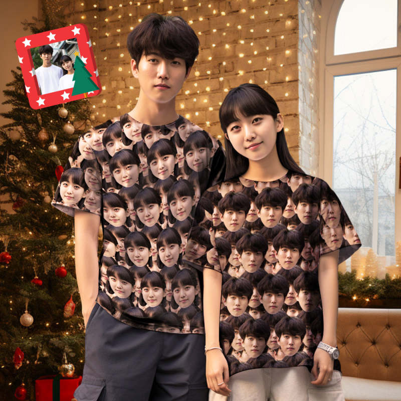 カスタムフォトTシャツ-写真入り可能なオリジナルTシャフェイスマッシュクリスマスプレゼント