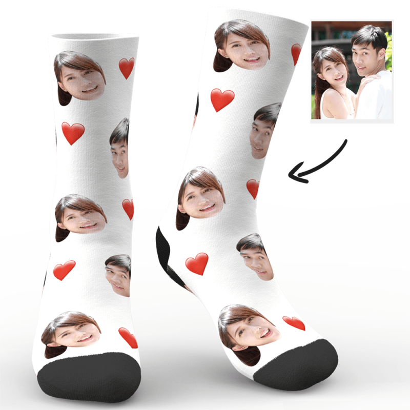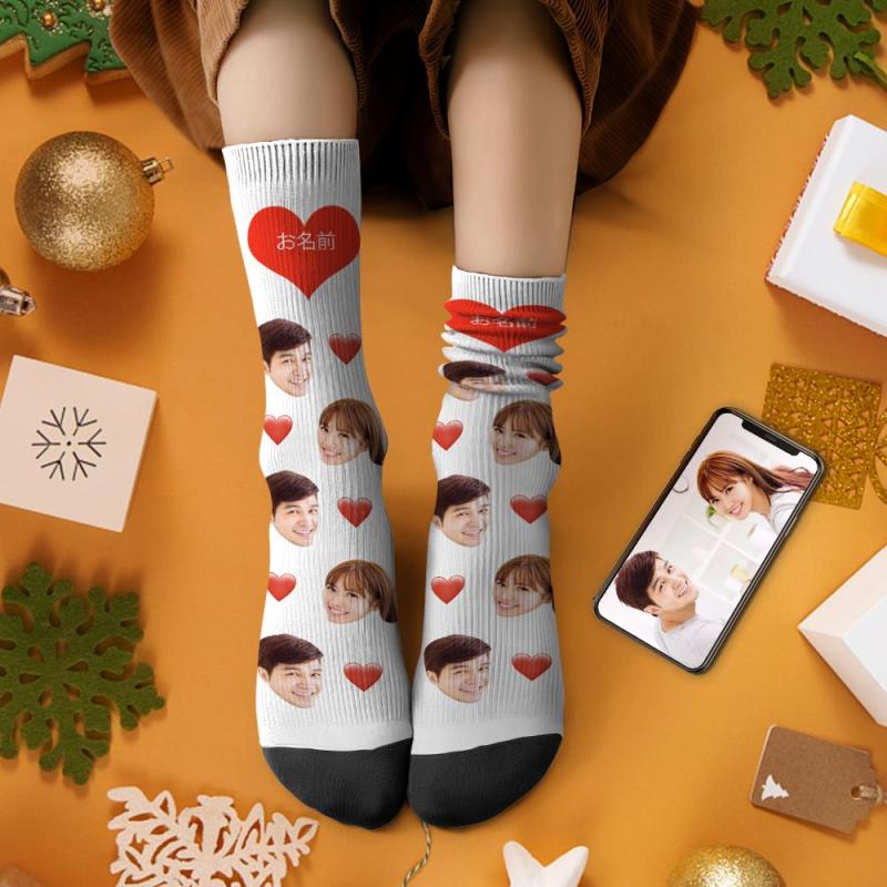 カスタム写真靴下 テキスト付き ハート