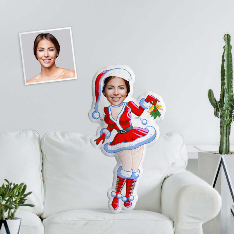 フェイスピロー サンタ カスタム ミニ スローピロー パーソナライズされたクリスマスガール レッドブーツ ガールフレンド用スローピロー