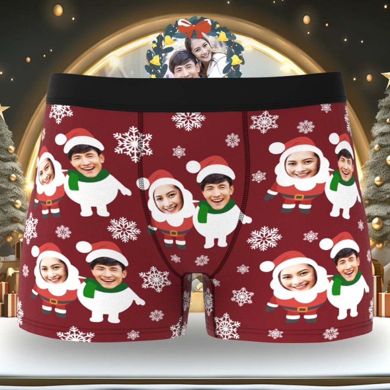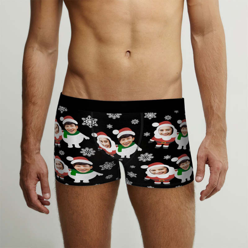 カスタム顔ボクサーパンツ-2つの顔の写真入れ可能なオリジナルフォト下着ショーツクリスマスギフト-可愛いサンタと雪だるま