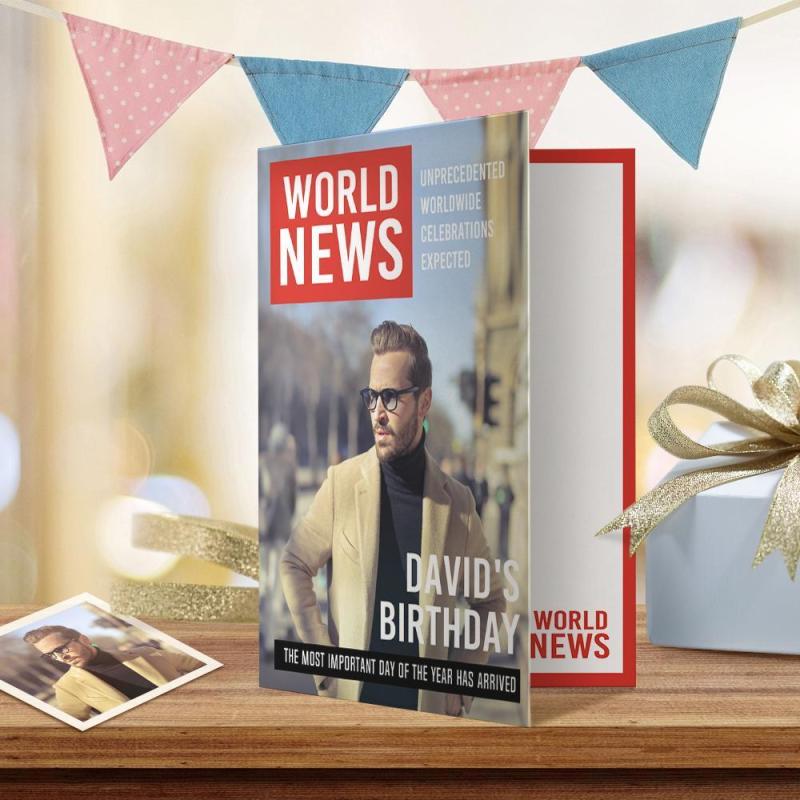 カスタム誕生日グリーティングカード-ハッピーバースデー世界ニュースカード
