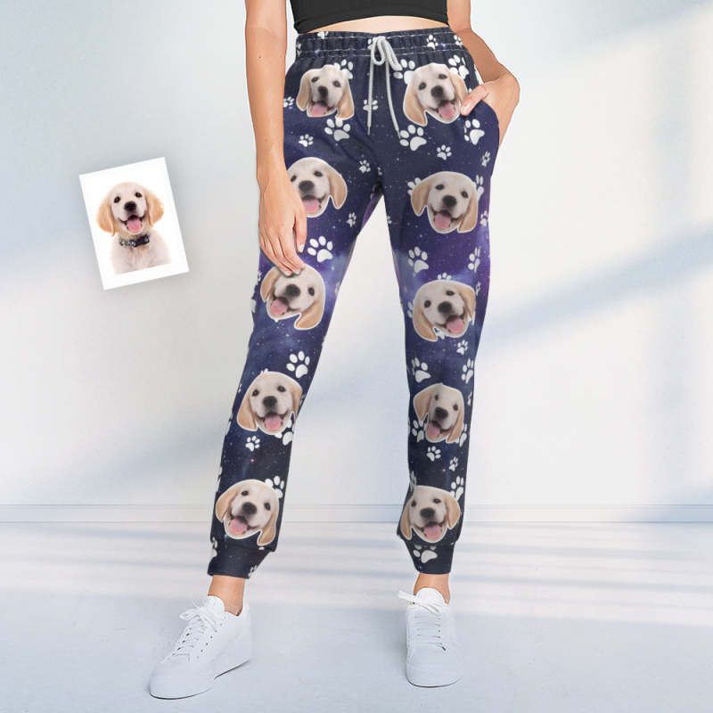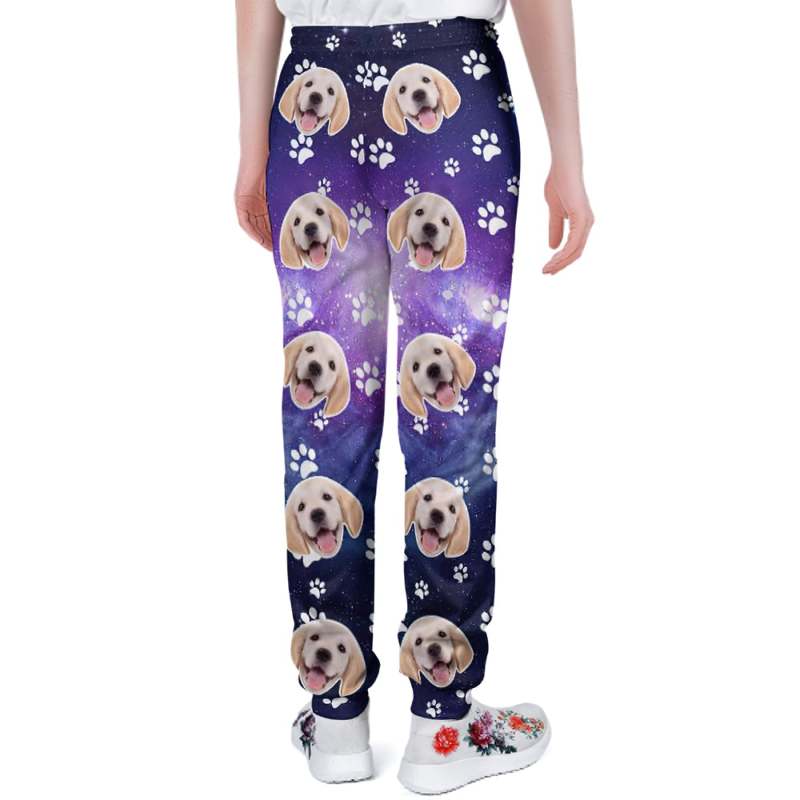 カスタムフェイススウェットパンツ - 犬写真入れ可能な男女兼用ジョガーパンツ - 宇宙柄