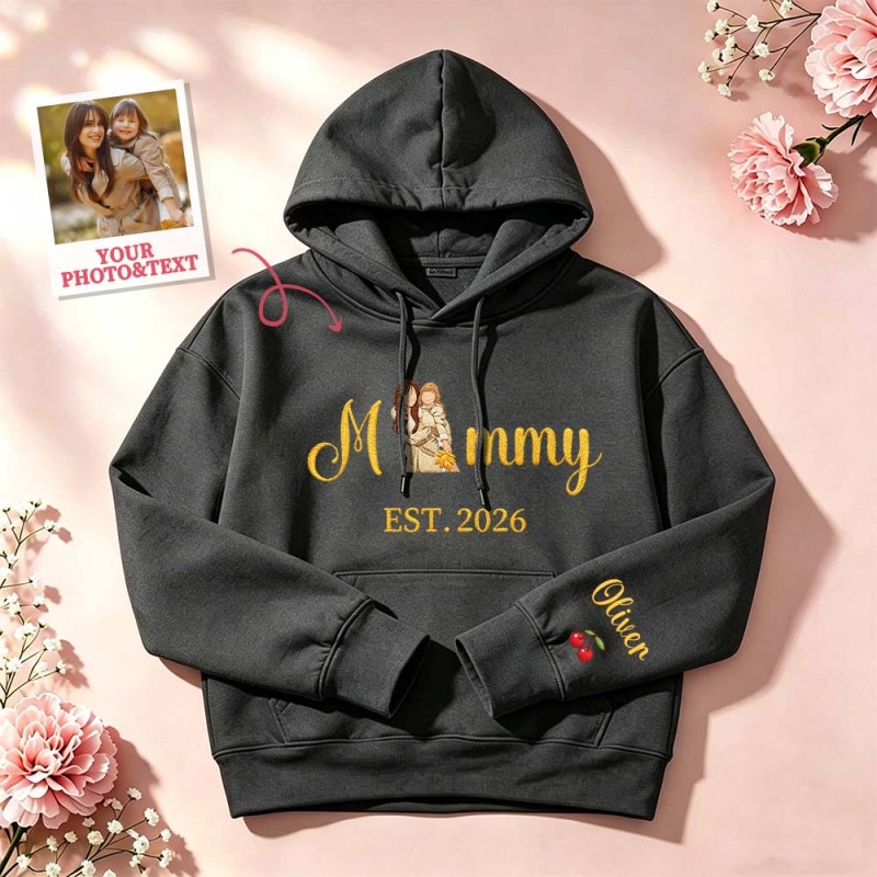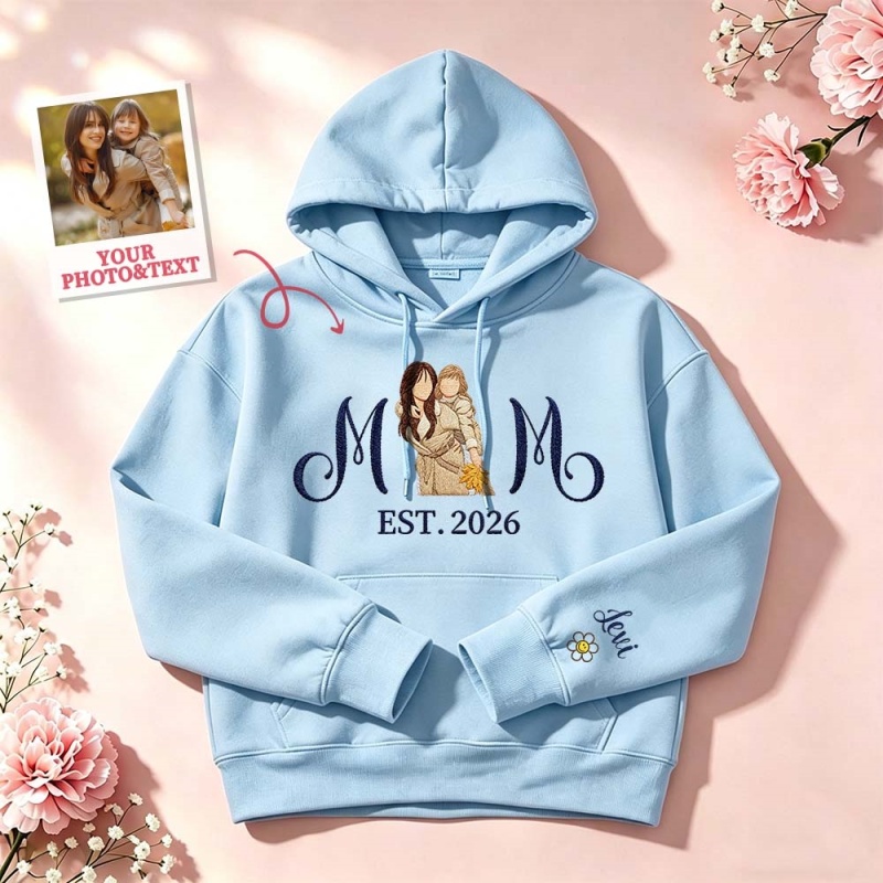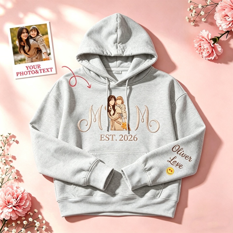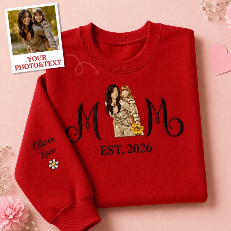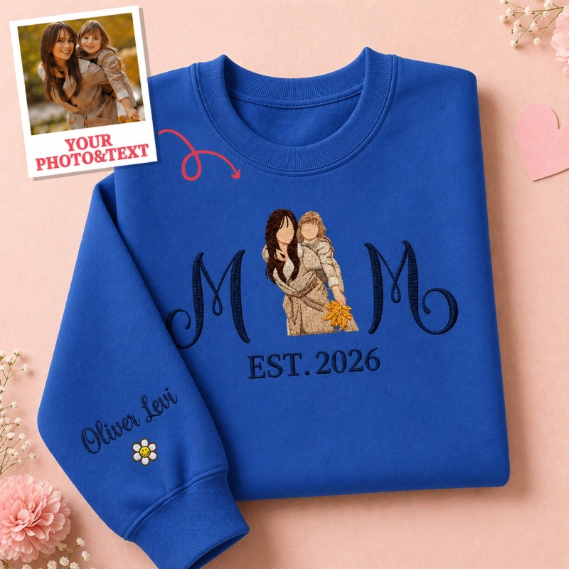 ママと子供たちの肖像画が刺繍されたカスタム刺繍入りママ用スウェットシャツ