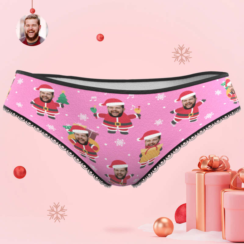 カスタムフォトパンティー-写真入れ可能なサンタクロース柄のクリスマスピンクの女性用パンティーショーツギフト