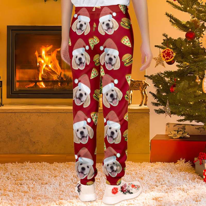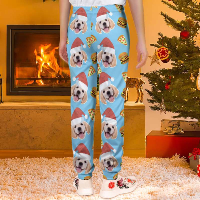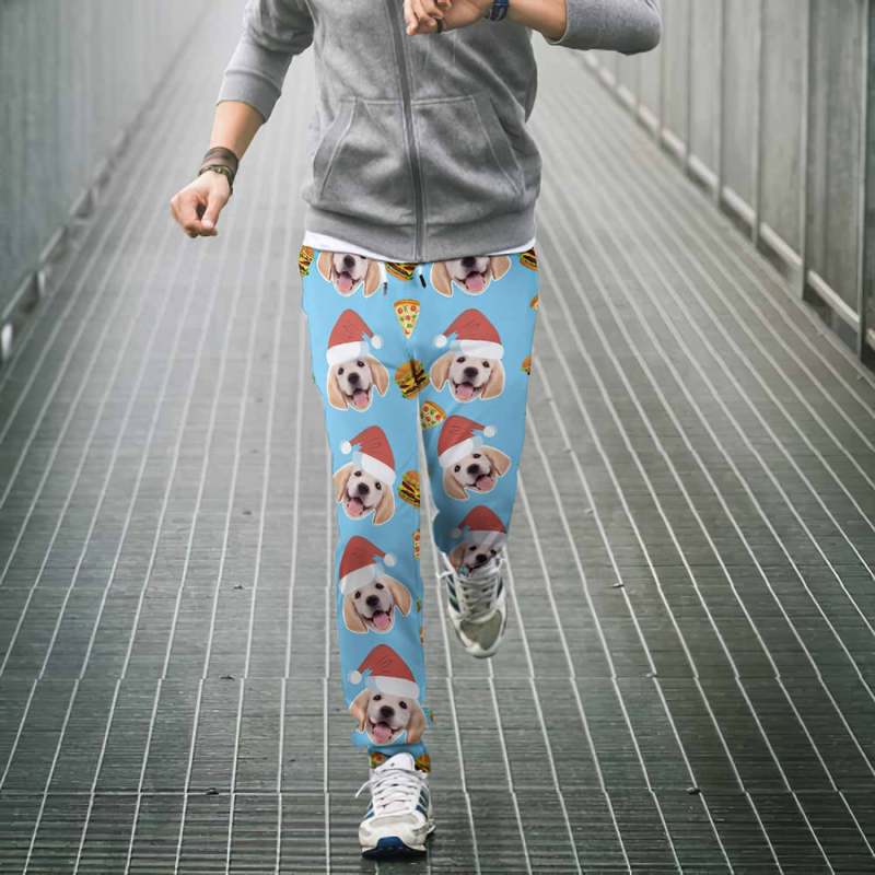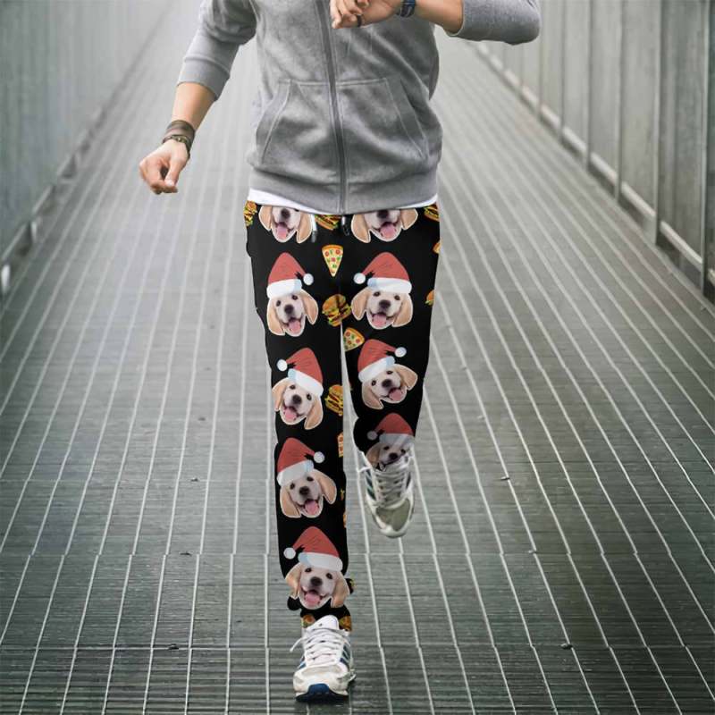 カスタムフェイススウェットパンツ - 写真入れ可能な男女兼用ジョガーパンツ - ピザとバーガー