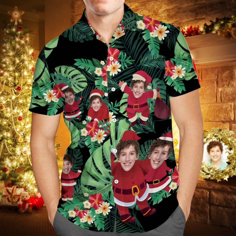 カスタムフェイスハワイアンスタイルシャツ家族コーデ - サンタクロースの休日
