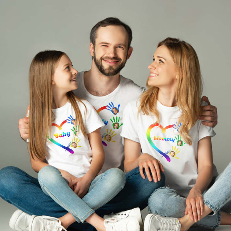 カスタム写真ファミリーTシャツ-手のひらに愛