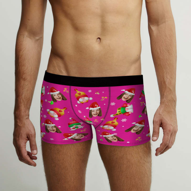 カスタムフォトボクサー-写真入れ可能なハッピーノーム柄のクリスマスピンクのボクサーパンツギフト