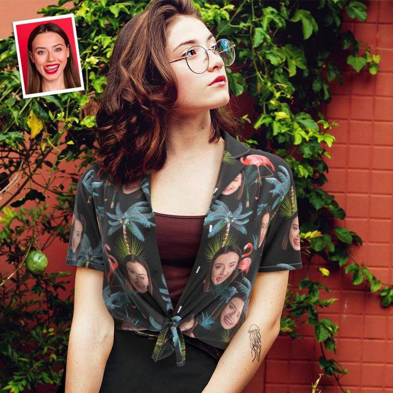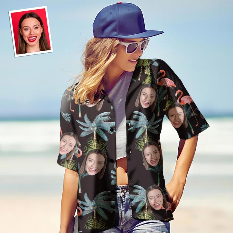 カスタムフェイスシャツ-写真入れ可能な女性用アロハシャツプレゼント-フラミンゴナイト