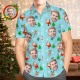 カスタムフォトアロハシャツ-写真入り可能なオリジナルクリスマスアロハシャツギフト-可愛いサンタとトナカイ