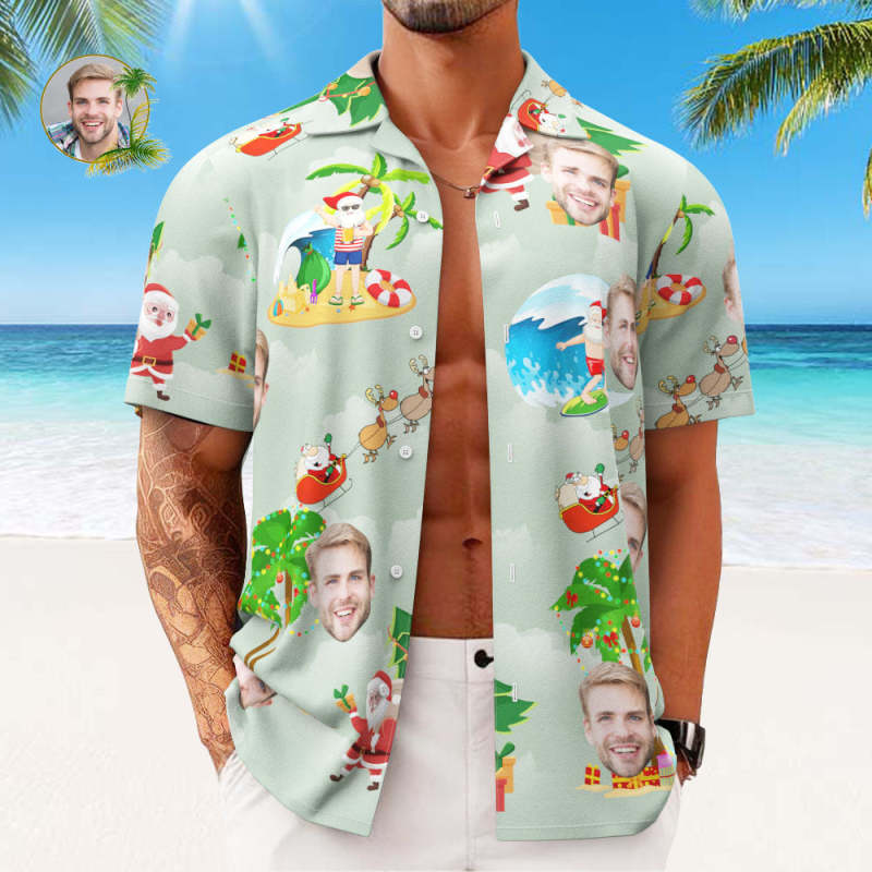 カスタムフォトアロハシャツ-写真入り可能なオリジナルクリスマスアロハシャツギフト-サーフィン休暇サンタ