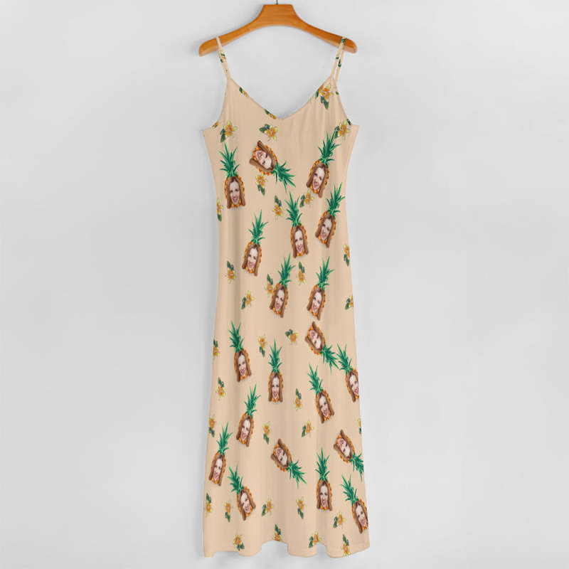 カスタムフェイスハワイアンスタイルロングスカート&シャツカップルルック - パイナップル柄トロピカルフラワー柄
