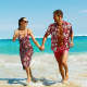 カスタムフェイスハワイアンスタイルロングスカート&シャツカップルルック - 白い花柄