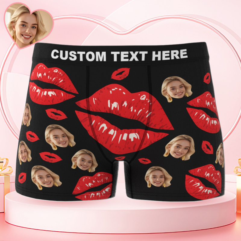 カスタムフェイスメンズアンダーウェア パーソナライズ写真 メンズボクサーブリーフ バレンタインギフト レッドリップボクサー