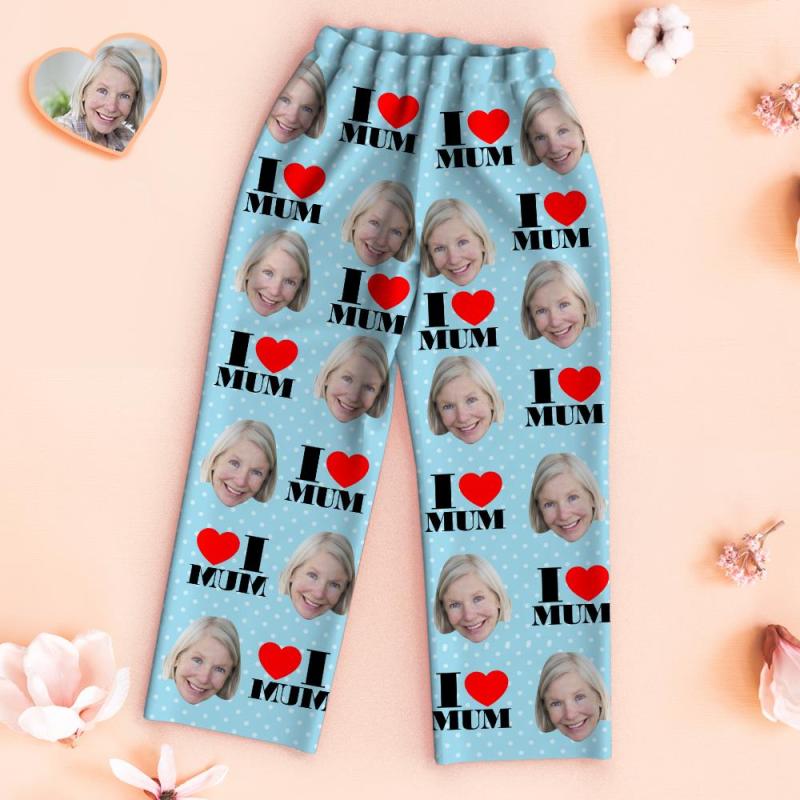 カスタムフェイスパジャマ-パーソナライズされた写真入れ可能な青いパジャマセット母の日ギフト母さんが大好き