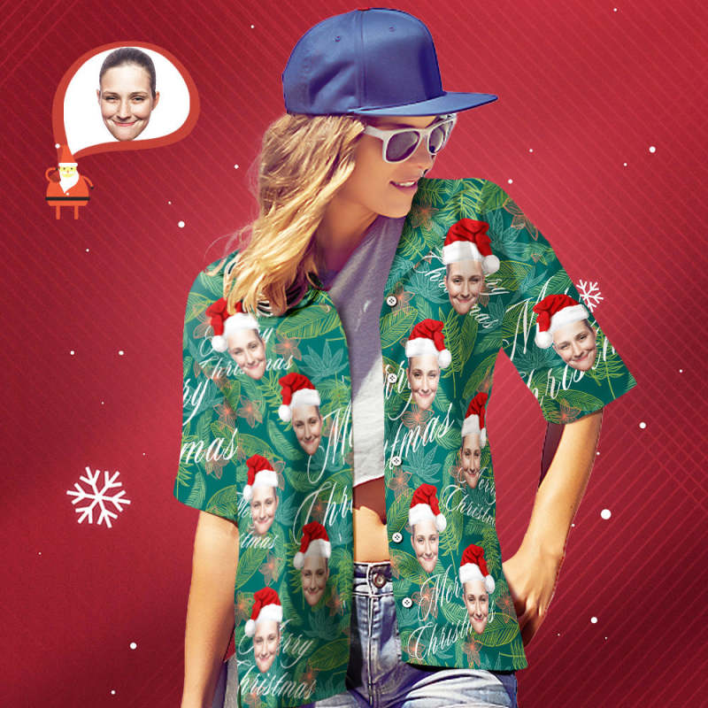カスタムフェイスシャツ-写真入れ可能な女性用クリスマスアロハシャツプレゼント-葉柄