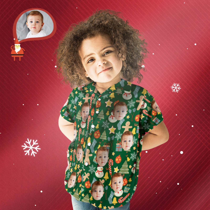 カスタムフェイスシャツ-写真入れ可能な子供用クリスマスアロハシャツ-メリークリスマス
