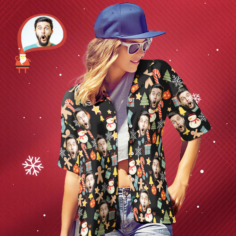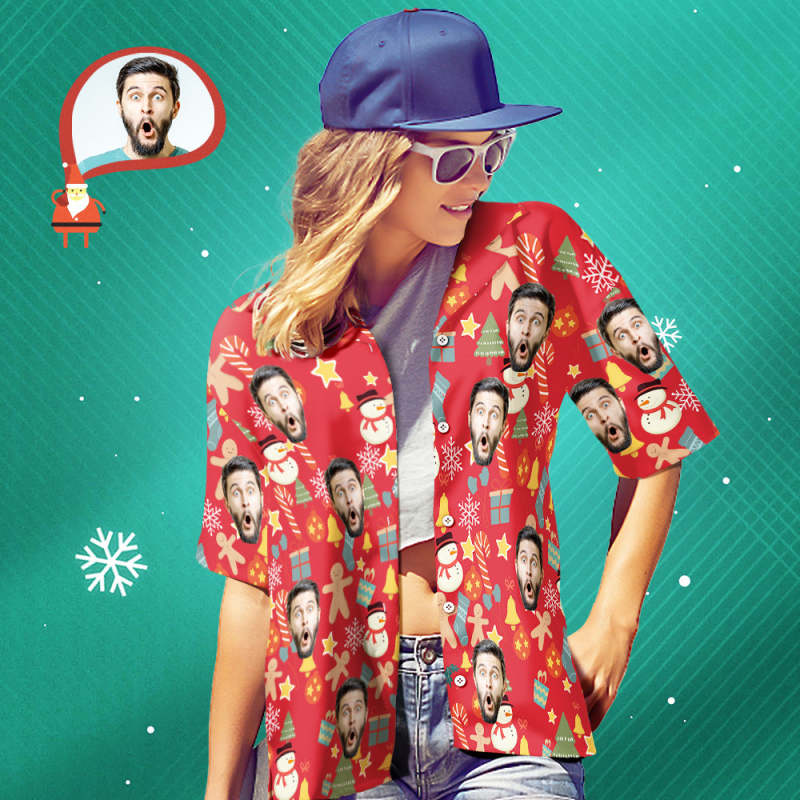 カスタムフェイスシャツ-写真入れ可能な女性用クリスマスアロハシャツプレゼント-メリークリスマス