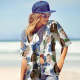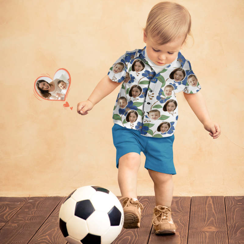 カスタムフェイスシャツ-写真入れ可能な女性用アロハシャツプレゼント-母の日ギフト青い花