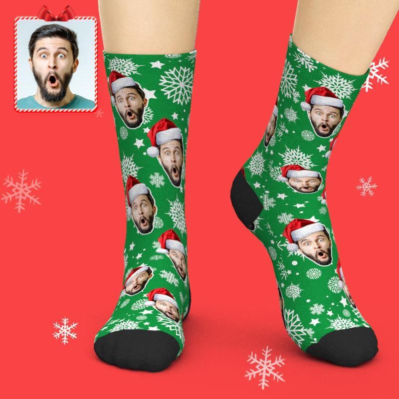 3Dプレビューカスタムフェイスソックス-写真入れ可能なクリスマス靴下-サンタハット