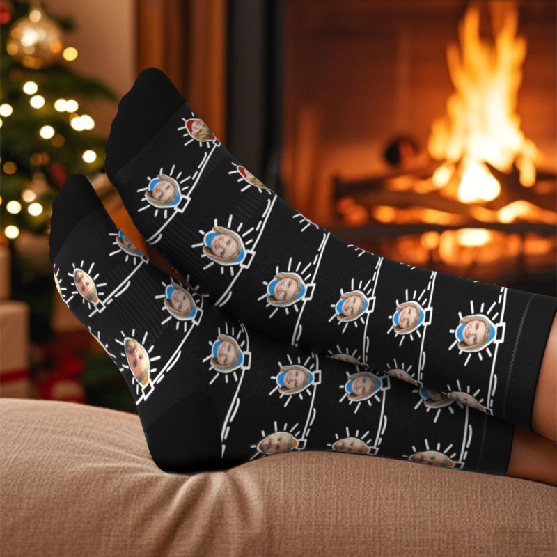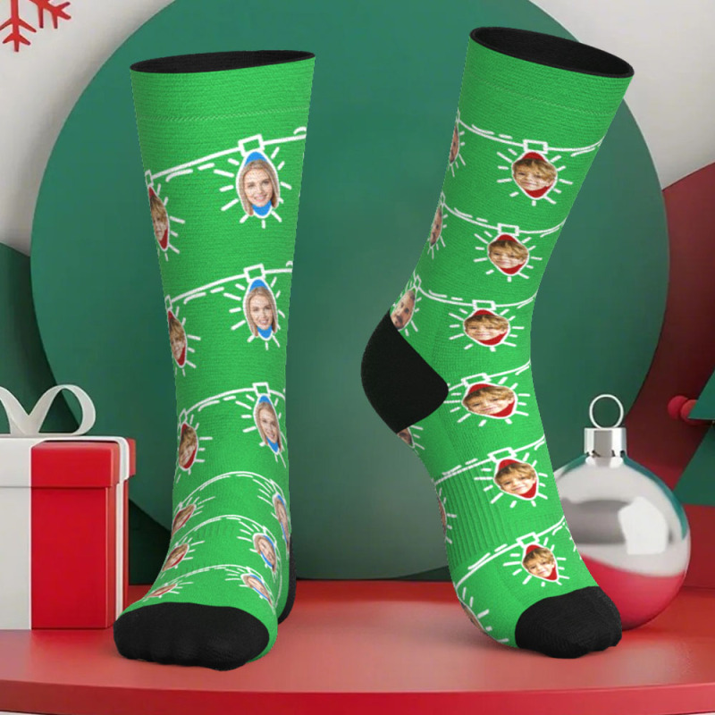 カスタムフェイスソックスパーソナライズされたクリスマスライトフォトソックス家族へのクリスマスギフト