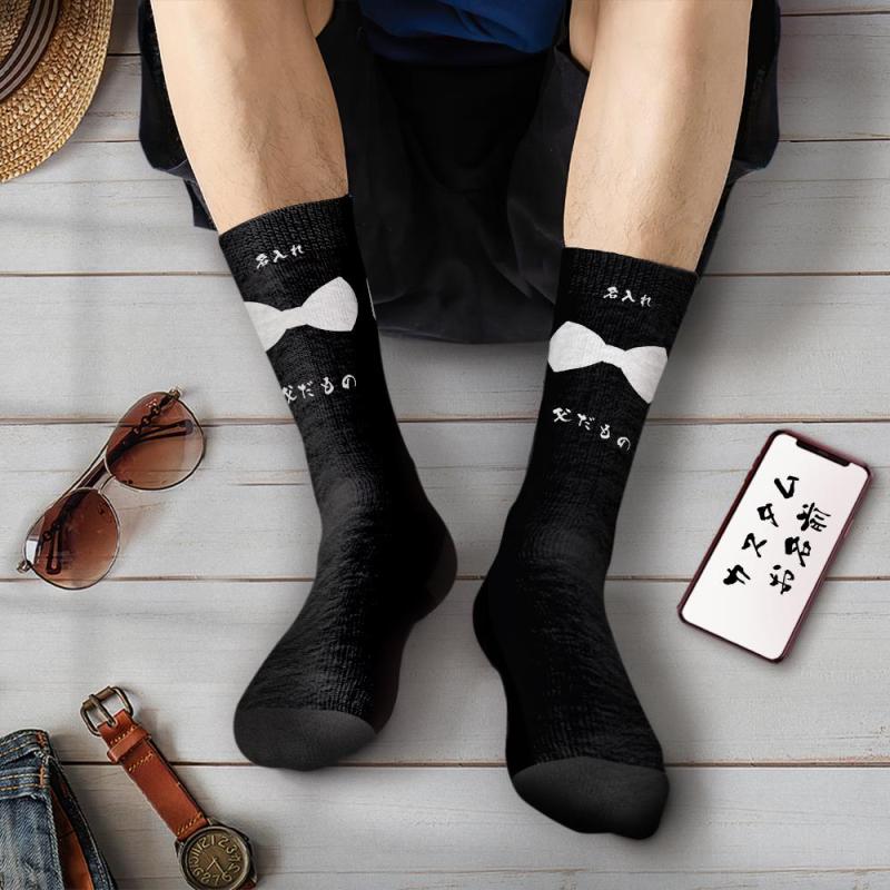 カスタム名前ソックス-名入れ可能な蝶ネクタイ柄のオリジナル靴下父の日プレゼント父だもの