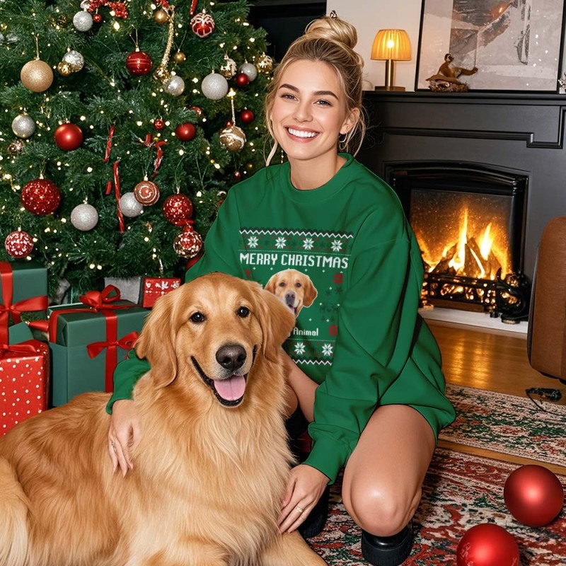 カスタム ペット フェイス ラウンド ネック パーカー ペット愛好家のためのパーソナライズされた写真醜いクリスマス スウェットシャツ