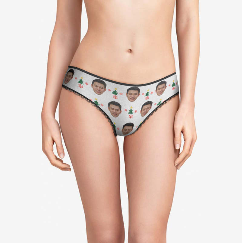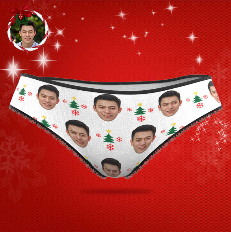 カスタムフォトパンティ-写真入れ可能なオリジナルクリスマスプレゼント女性用下着-クリスマスツリ—