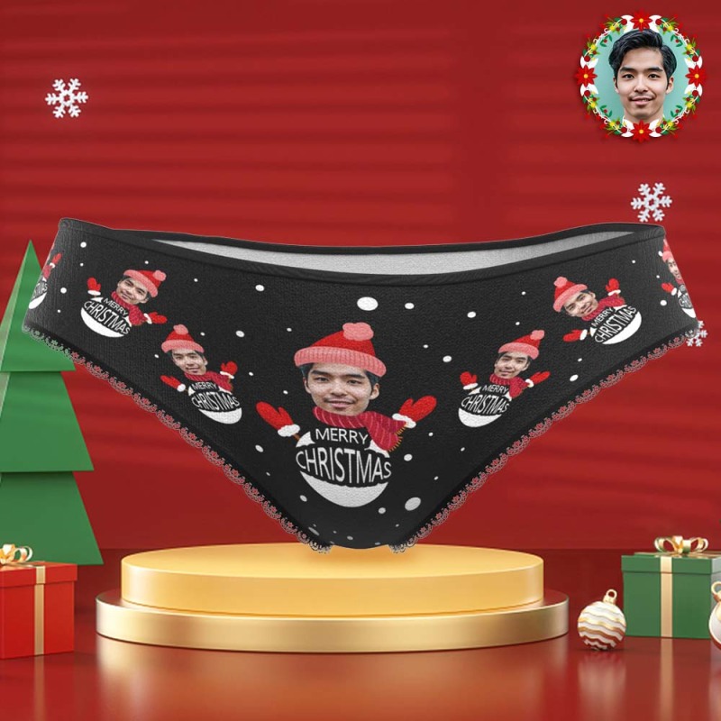 カスタムフォトパンティ-写真入れ可能なオリジナルクリスマスプレゼント女性用下着-雪だるまメリークリスマス
