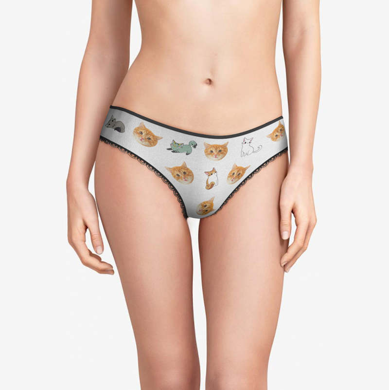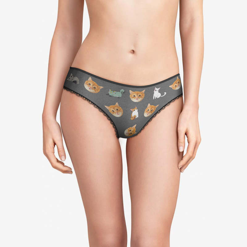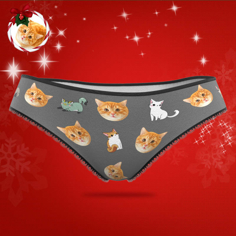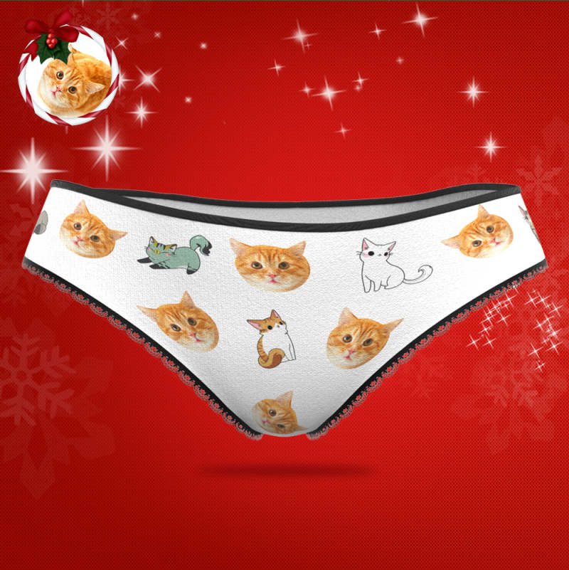 カスタムフォトパンティ-写真入れ可能なオリジナルクリスマスプレゼント女性用下着-かわいいネコ柄