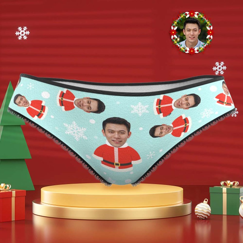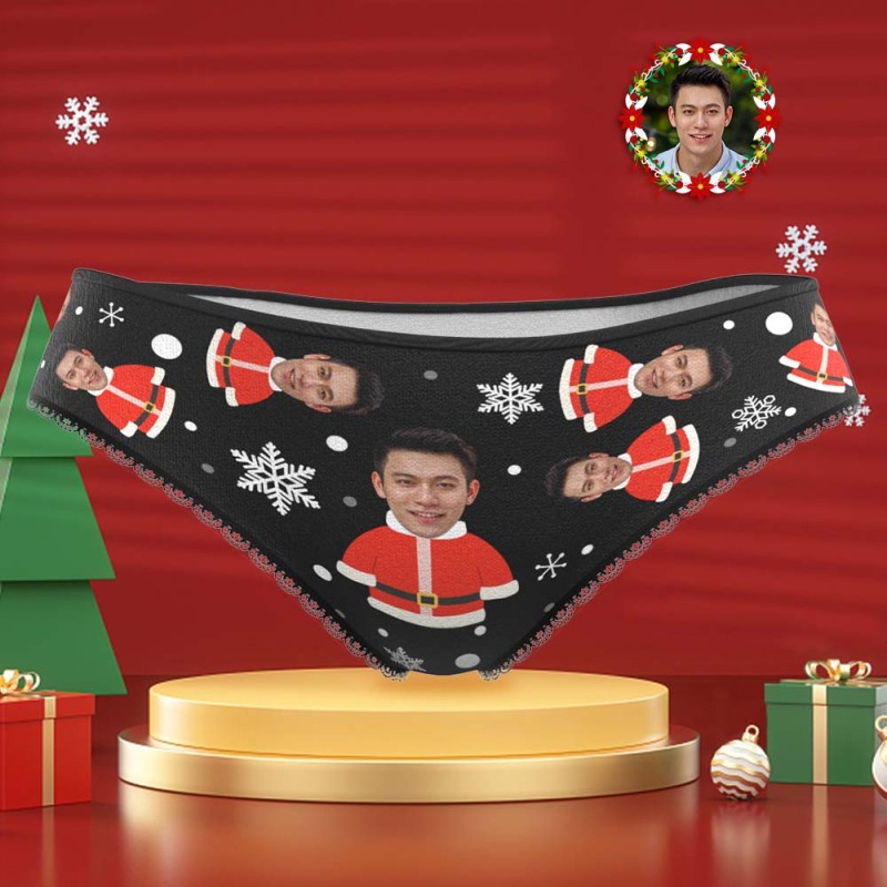 カスタムフォトパンティ-写真入れ可能なオリジナルクリスマスプレゼント女性用下着-サンタと雪の花柄
