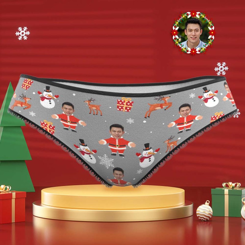 カスタムフォトパンティ-写真入れ可能なオリジナルクリスマスプレゼント女性用下着-雪だるまサンタクロース柄