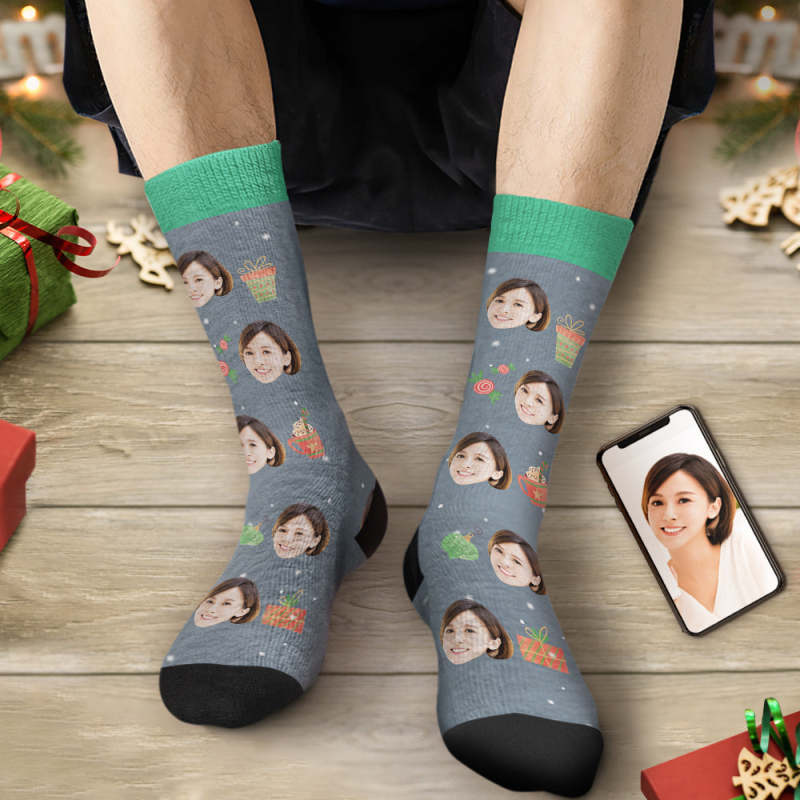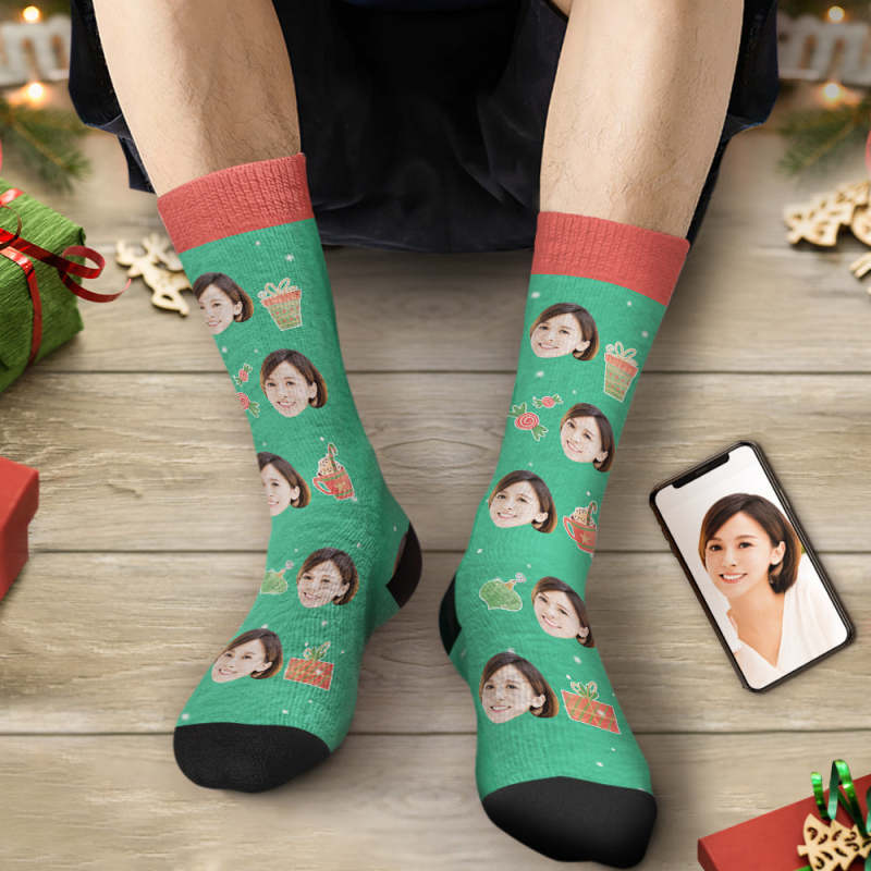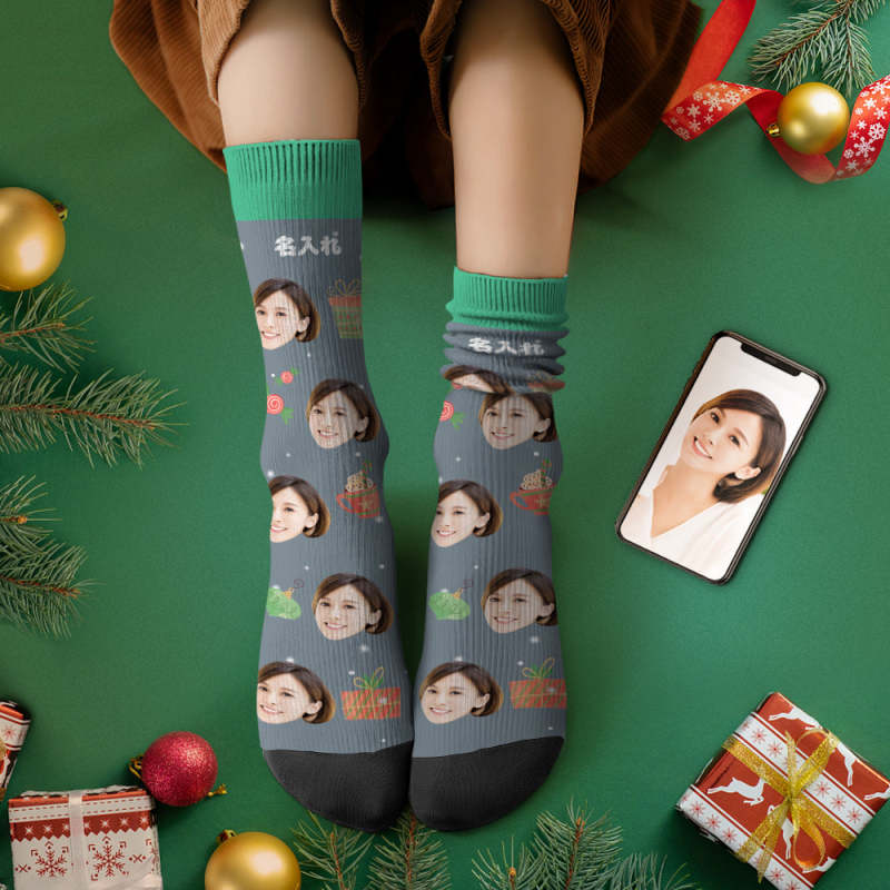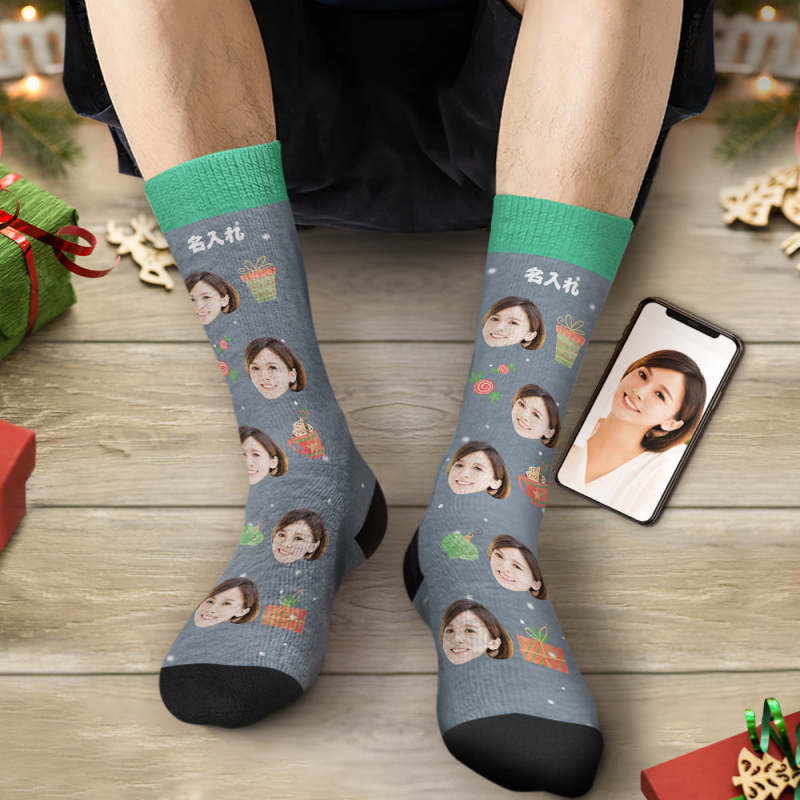 カスタムフェイスソックス-写真入れ名入れ可能なオリジナルクリスマス靴下プレゼント-お菓子プレゼント柄