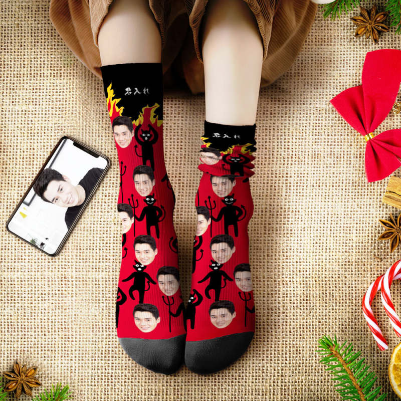 カスタムフェイスソックス-写真入れ名入れ可能な面白い宇宙飛行士とロケット柄のオリジナル靴下プレゼント