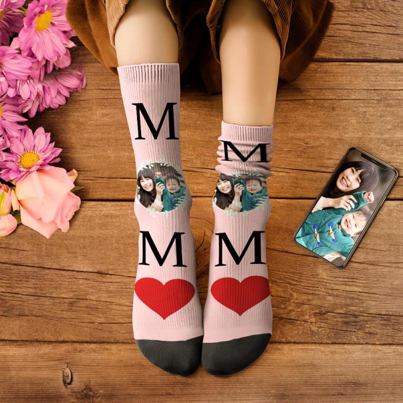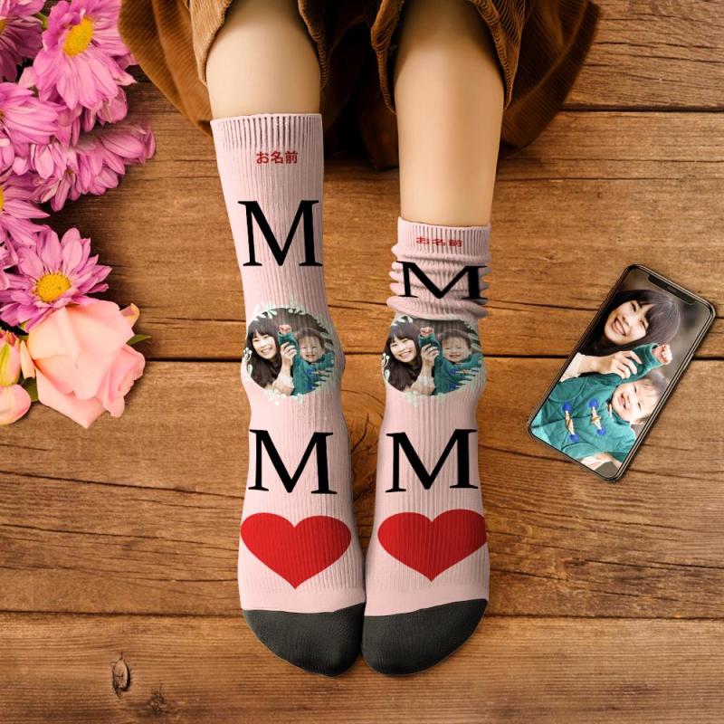 カスタムフェイスソックス-写真入り名入れ可能なハート柄のオリジナル靴下母の日プレゼントMOM