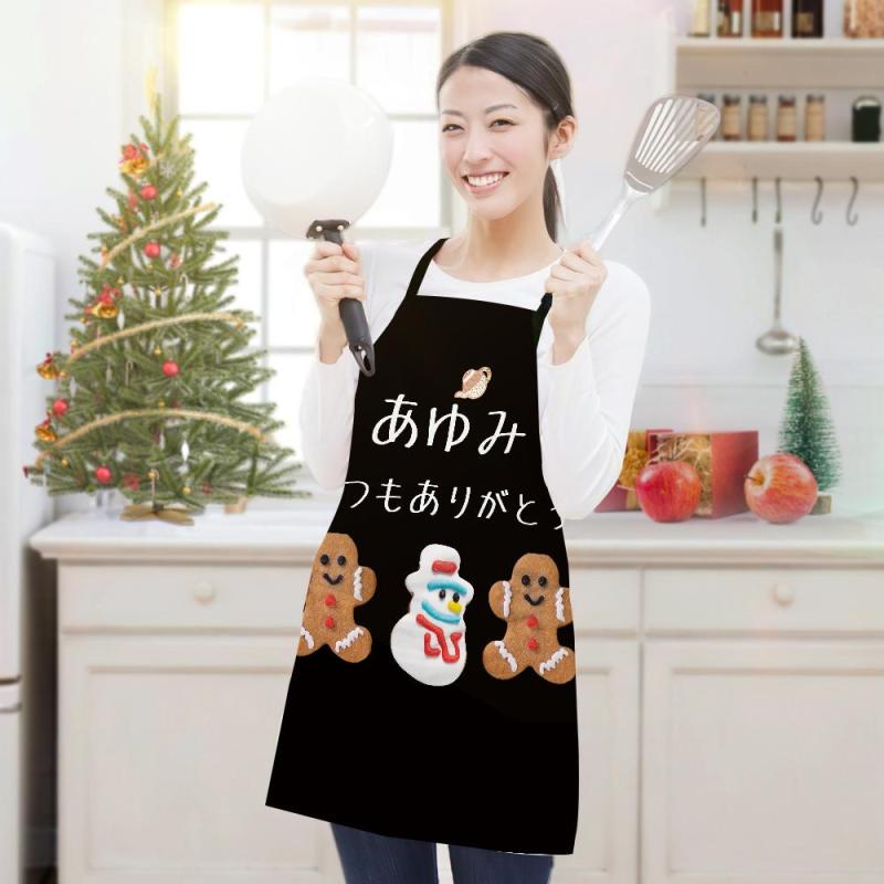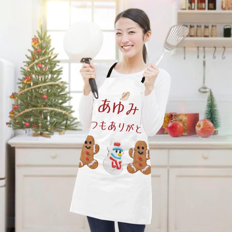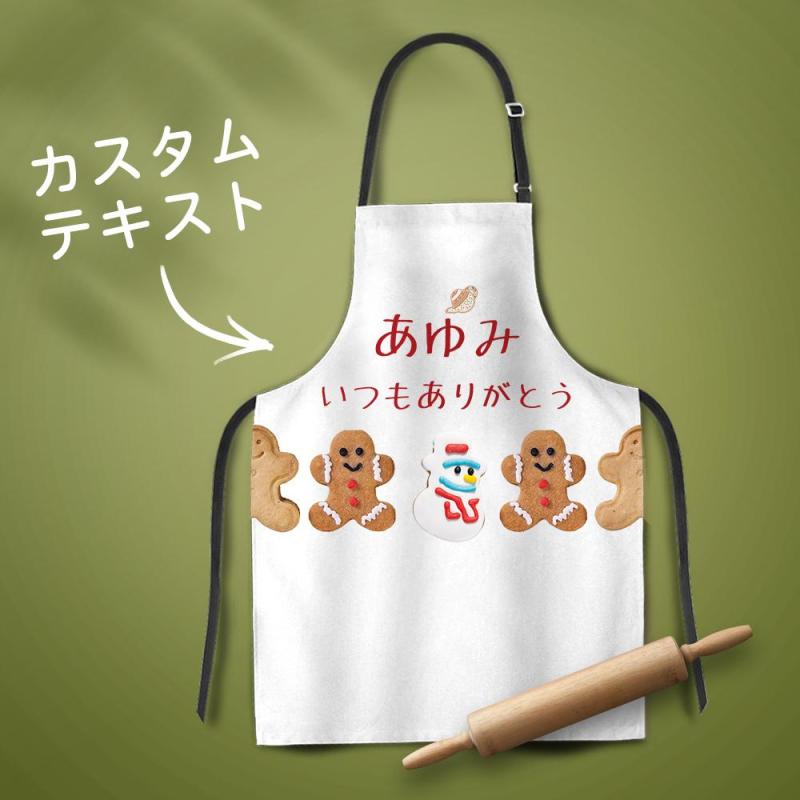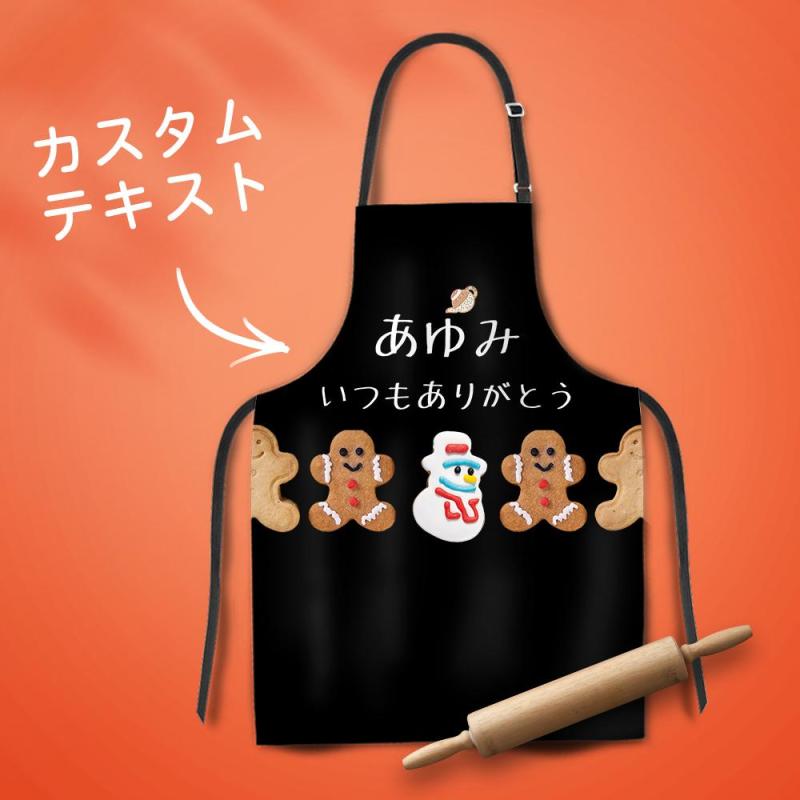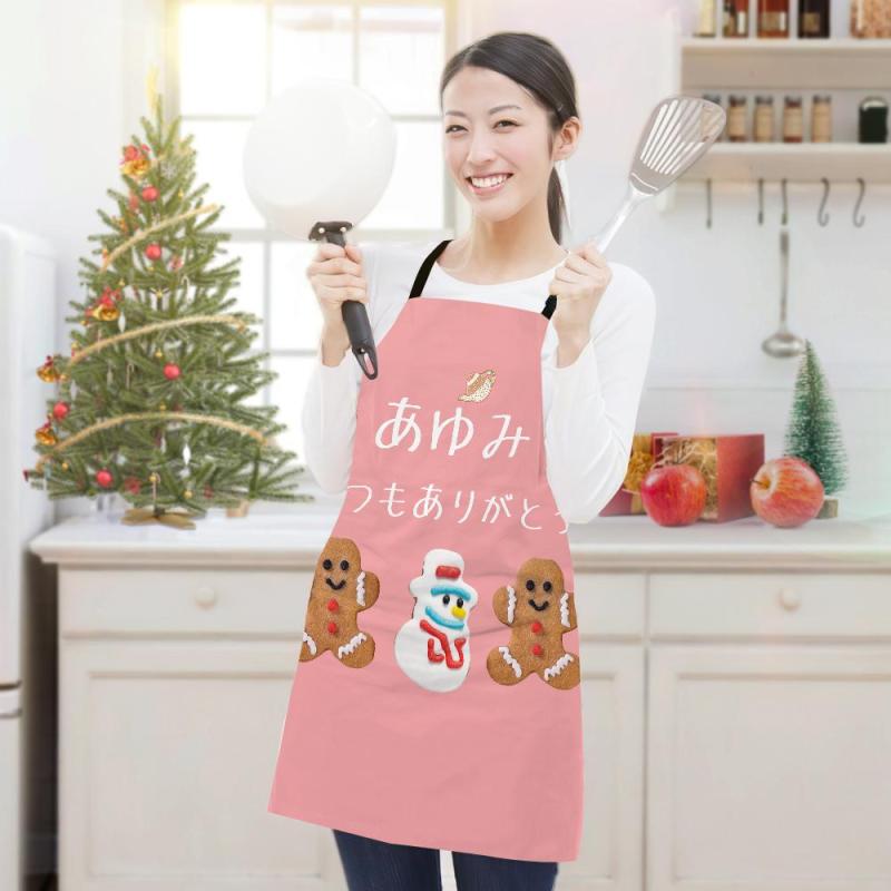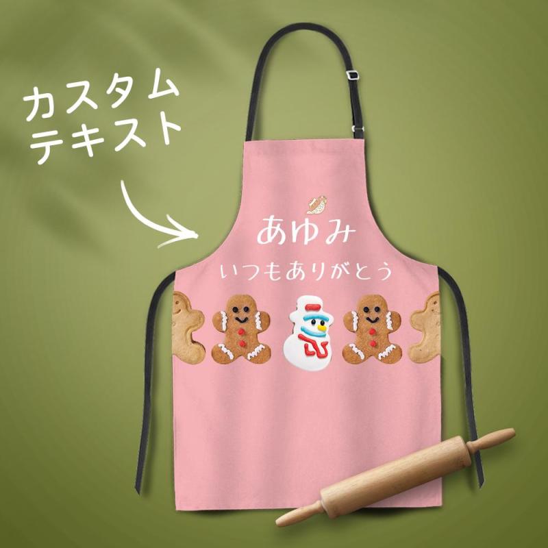 カスタム名前エプロン-テキスト入れ可能なキッチン首掛け式クリスマスエプロンギフト-ジンジャーブレッド人
