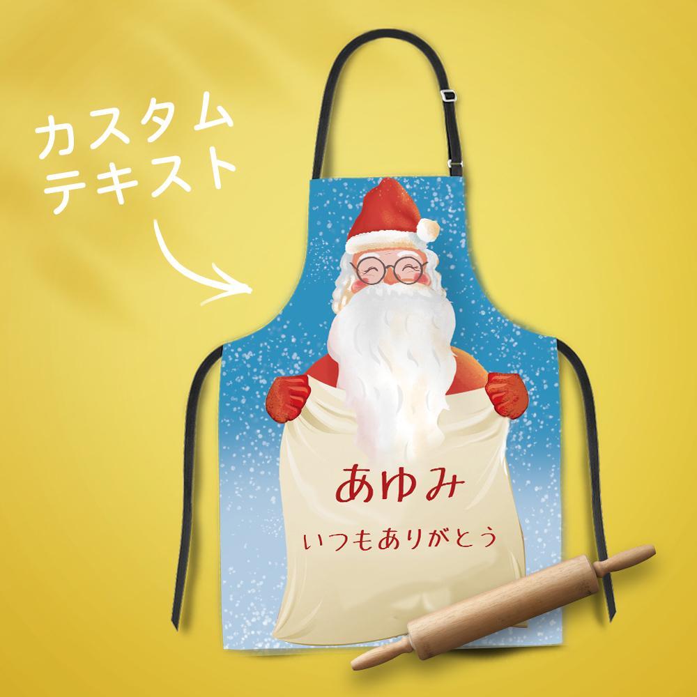 カスタム名前エプロン-テキスト入れ可能なキッチン首掛け式クリスマスエプロンギフト-サンタ