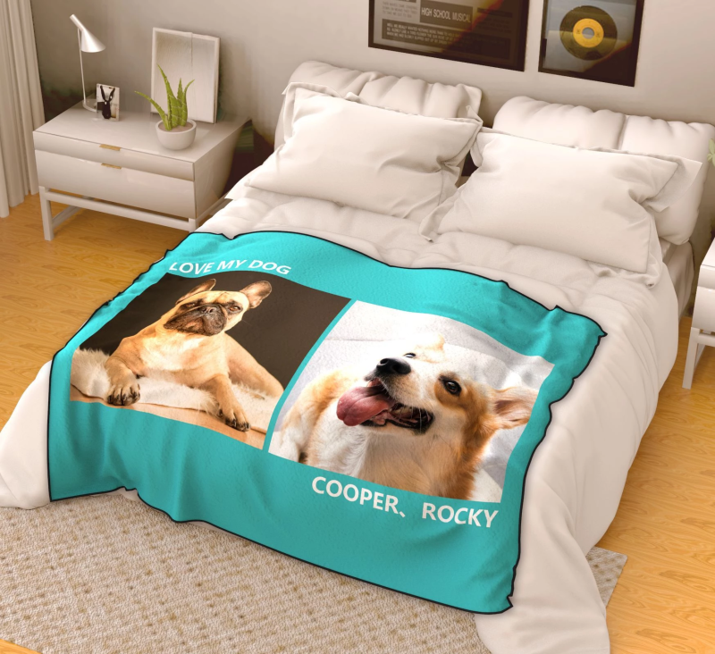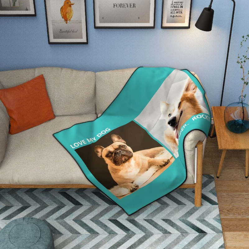カスタム写真二枚フリースカスタムブランケッとパーソナライズされた毛布愛犬