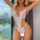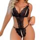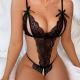 セクシーな誘惑 ブラック シースルー レース スパゲッティストラップ くり抜き ボディスーツ テディ ランジェリー