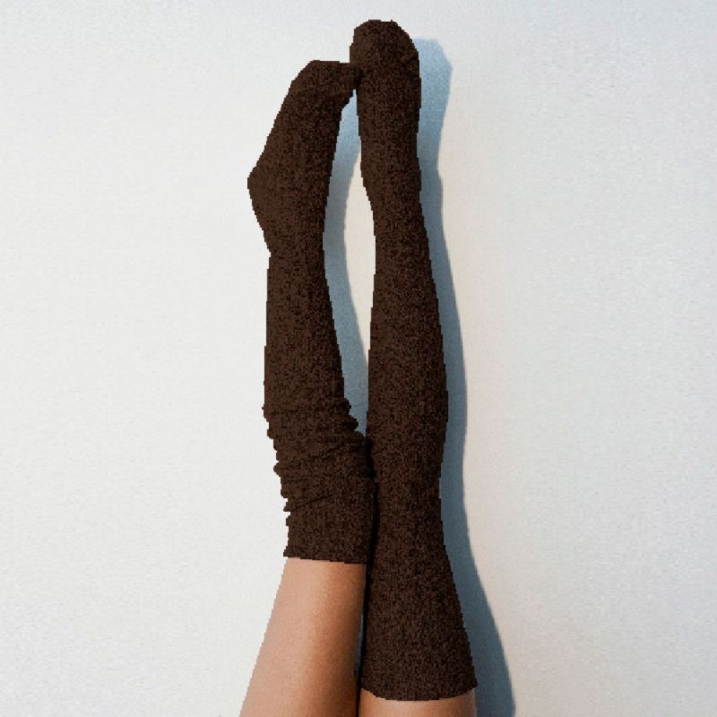 女性用冬の暖かいロングソックス無地ニットニーハイパイルソックス