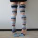 女性用冬の暖かい足帯の縞の膝の上のニットの綿糸の靴下